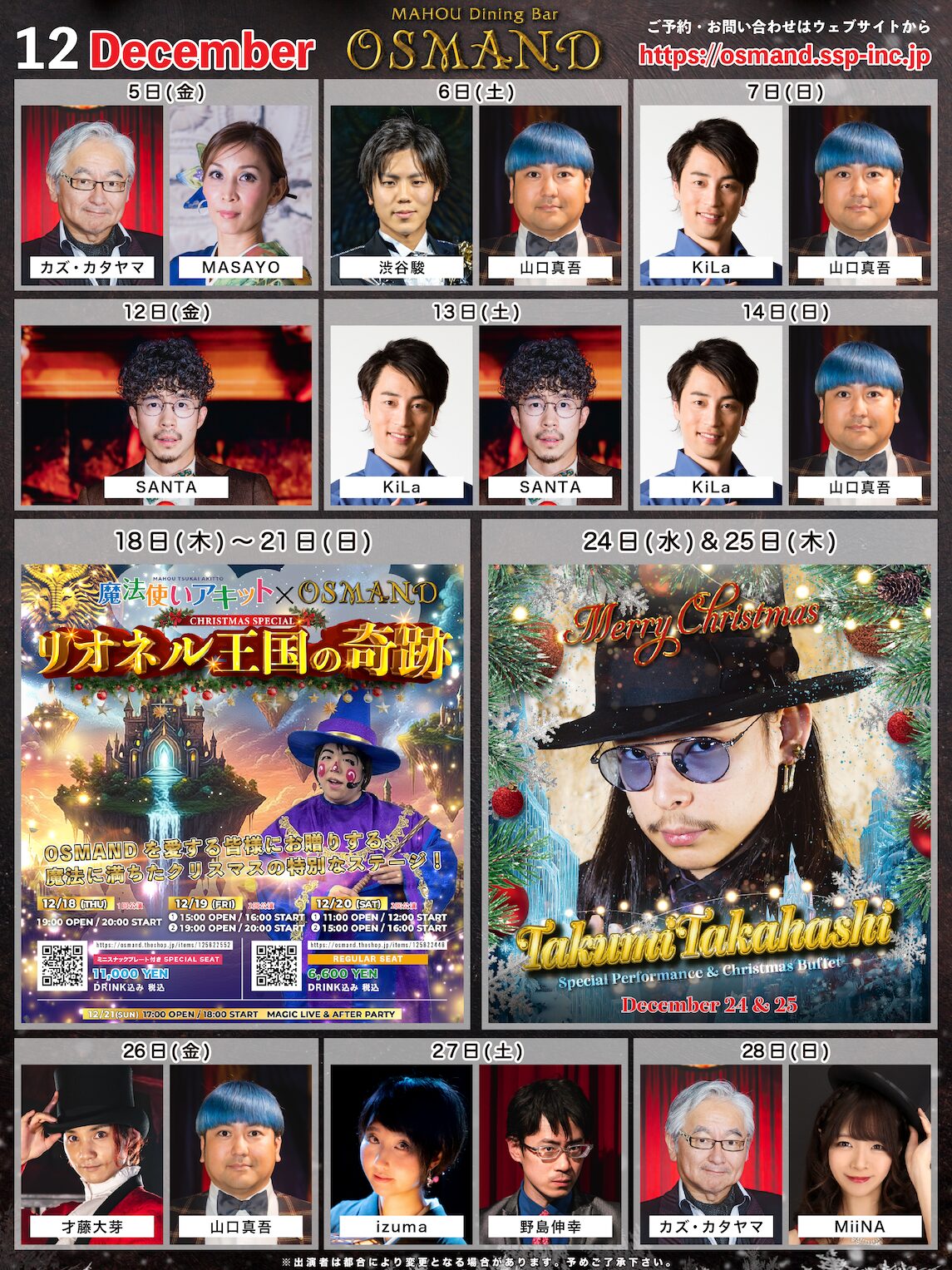 ※最新のタイムテーブルはスケジュールカレンダーをご覧いただくか、OSMAND店鋪までお問い合わせください。