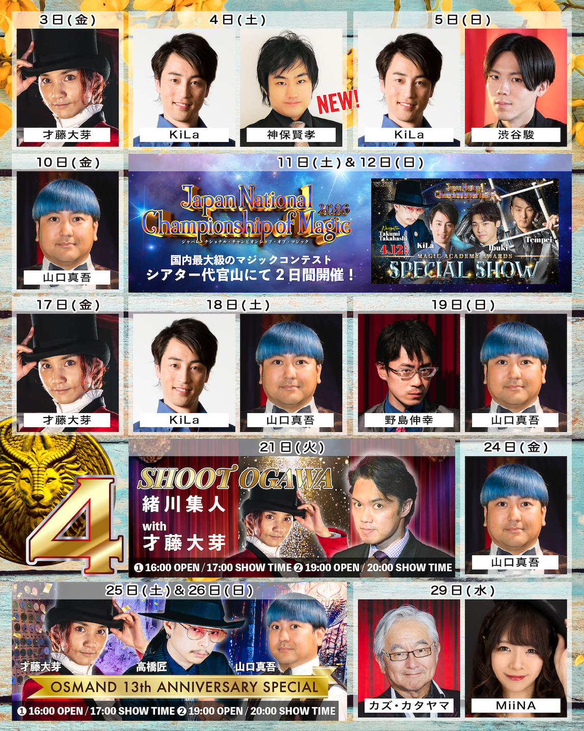 | 19:00 Open テーブルマジック随時 – Closeup Magic |